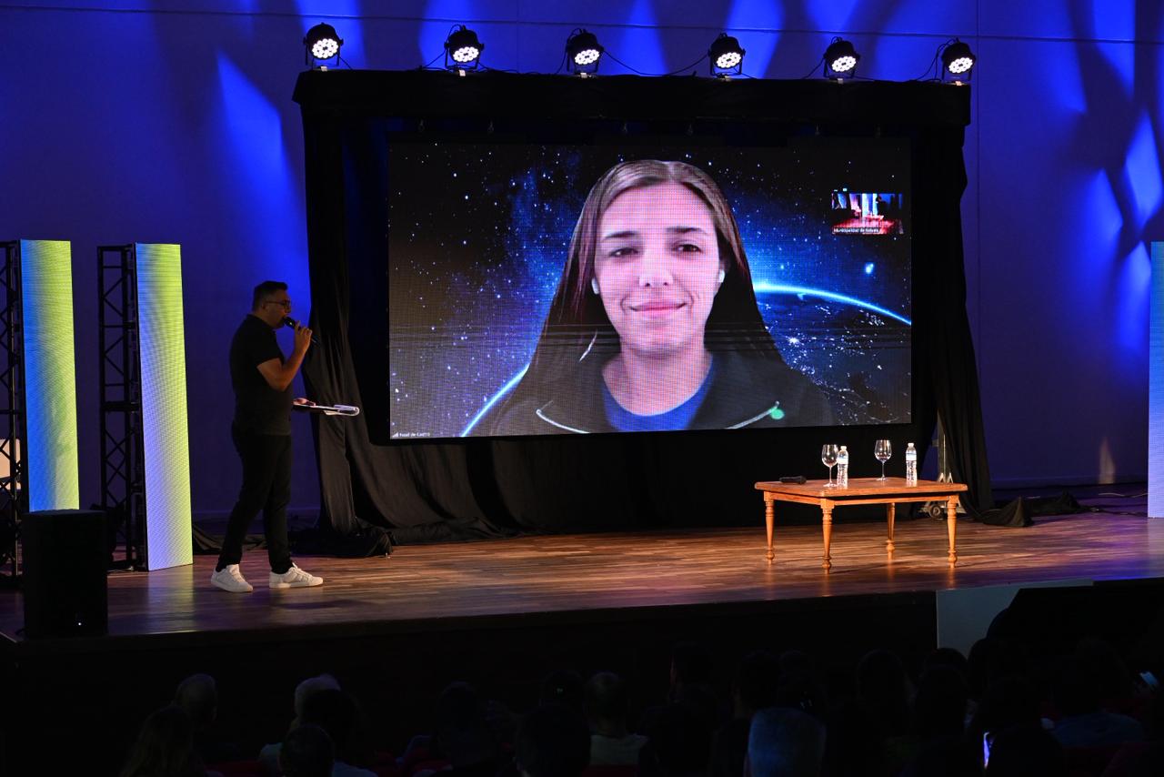 Noel De Castro se conectó de manera virtual desde Estados Unidos y compartió su recorrido académico y profesional en el ámbito de la ciencia y la tecnología. Formada como ingeniera biomédica y con una maestría en ingeniería aeroespacial, fue presentada como candidata oficial a astronauta por parte de Argentina. Actualmente se desempeña en el desarrollo de relaciones institucionales a nivel nacional e internacional dentro de la industria espacial, y lleva adelante actividades de divulgación científica orientadas a acercar estos contenidos a nuevas generaciones.